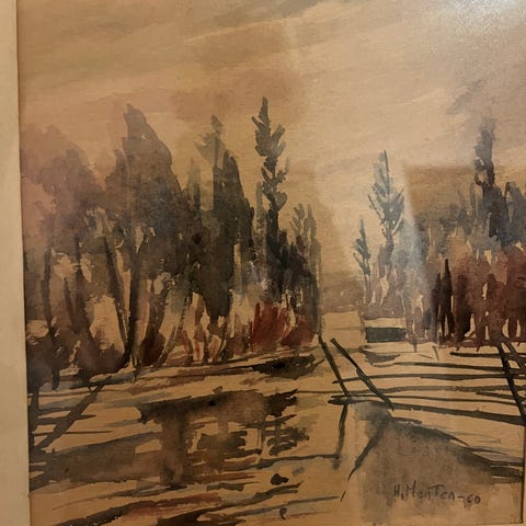 Kaunis maisema vesistöstä vuodelta 1962. En saa selvää maalarin nimestä, mahdollisesti O. Soojonen? Koko kehyksen reunasta mitattuna: 37cm x 27cm. Vain nouto Vantaan Rajatorpasta ja maksu käteisellä tai Mobilepayn kautta