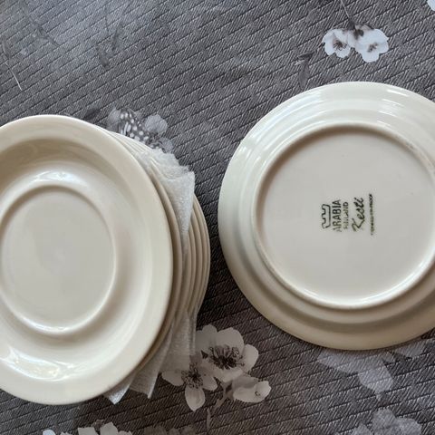 8 kpl 17cm valkoisia Arabian Kesti-lautasia. Hyväkuntoisia, pieniä käytön jälkiä näkyvissä.