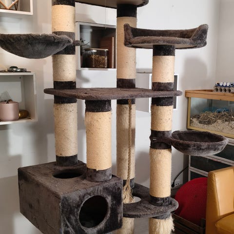 Natural paradise raapimispuu. Kolme tolppaa aika raavittu loppuun, mutta esim. zooplussasta saa uusia tolppia ja sisalnarua. Tasot ovat vaneria joten puu on myös painava mutta myös pitkäikäinen.