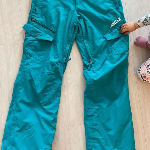 Erittäin hyvässä kunnossa olevat ja vain muutaman kerran käytetyt Burtonin ruskeat reisitaskulliset lumilautailuhousut. Lahkeissa vetoketjulliset tuuletusaukot, lumilukot joissa edessä kenkien nauhoihin kiinnitettävä koukku. Vyötäröllä molemmin puolin säätömahdollisuus jos ei halua käyttää vyötä. Sepaluksessa kaksisuuntainen vetoketju. Mallin puolesta unisex-housut.