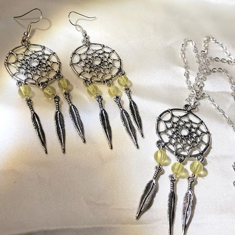 Kaunis Turkoosi Kivi Unisieppari jonka pituus on 4,5cm ja ketjun pituus on 50cm,925 leima ketjussa,lahjarasia mukaan.( Uskomusten mukaan pahat unet tarttuvat verkkoon ja valuvat höyhenten kautta maahan, kun taas hyvät unet pääsevät verkon läpi. Unisiepparin rengas symboloi elämän kiertokulkua ja keskellä oleva verkko kaikkia niitä unelmia, joita meillä on päivätajunnassa ja unitilassa.) (Postitus kirjeenä tai nouto)
