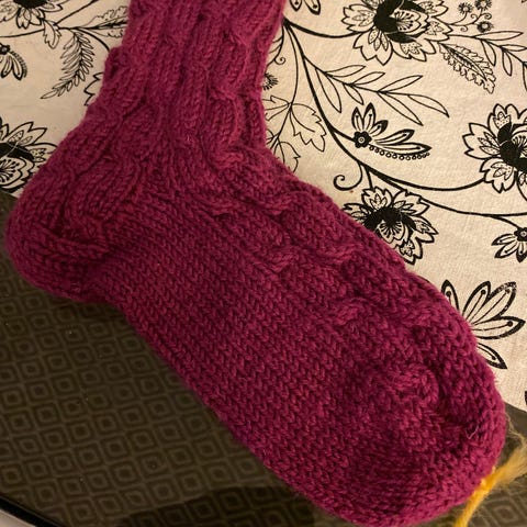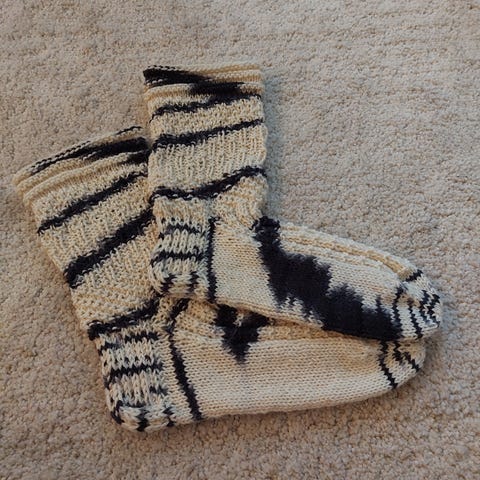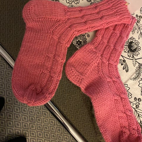 Kauniit sukat, käsinneulottu 7 veljestä-langasta.