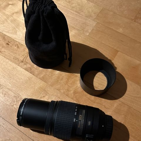 Nikkor 300 mm on 1,3 kg painoinen ammattilaisen teleobjektiivi. Se toimii Nikonin uudempien filmi- ja digikameroiden kanssa. Tarkennus toimii vain manuaalisesti, joten kuvaaja määrittelee itse, mikä kohta on tärkein.