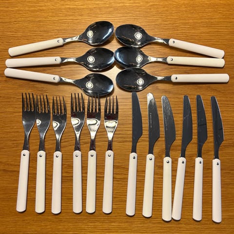 Välineitä on käytetty, teräksessä normaaleja käytönjälkiä.