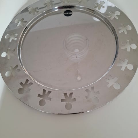 Alessi Girotondo hedelmäkulho / tarjoilukulho. Metallin / hopean värinen. Korkeus n.12cm, yläosasta leveys n.23cm. Nouto Jyväskylästä tai sovittaessa Itä-Vantaalta.