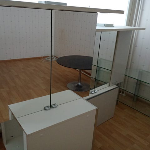 Uusi valkoinen Epoq-keittiön pöytä/seinäkaappi. Virheellisesti lähettivät ylimääräisen kappaleen. Paketti avattu, mutta tuote täysin koskematon. Tarkoitettu seinälle, joten paketissa ei ole jalkoja mukana.