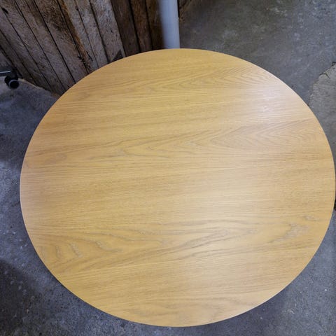 Pöytälevy 80 cm. Valmistettu tammiviilusta mdf-levystä. Pöydän jalat ovat tammea. Kunto erinomainen. Nouto hki kallio