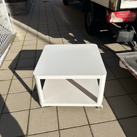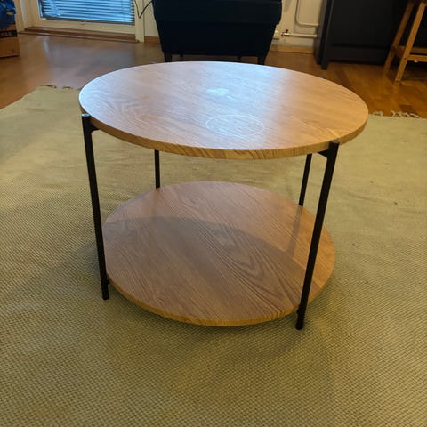 Ikean sohvapöytä, erinomainen kunto. Taso edelleen tukeva. Pöydän halkaisija 50cm, korkeus 40cm.