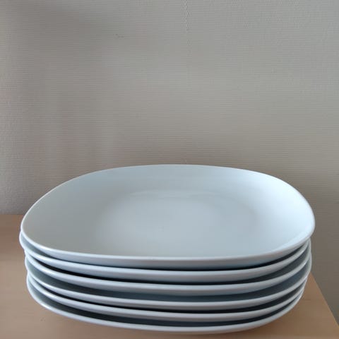 Myydään neljä IKEAN valkoista suorakulmaista lautasta.