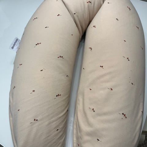 Siistissä käytetyssä kunnossa Doomoo buddy imetystyyny. Kankaassa pieni reikä, josta kuva. Ei ole lisätty täytettä, mutta halutessaan tyynystä saa siten muhkeamman. Pesty hajusteettomasti, savuton koti, ei kotieläimiä.