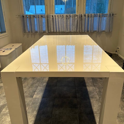 Myydään valkoinen IKEA Melltorp ruokapöytä koossa 125cmx75cm. Pöydässä pieniä jälkiä, mutta oikein käyttökelpoinen muutoin!