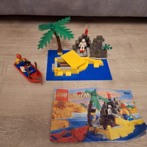 LEGO 6190 Shark’s Crystal Cave setissä on kaikki osat tallella samoin ohjeet. (Kuva kyseisestä setistä mutta laiton vaan siistimmän taustan sille kuin keittiön pöytä)