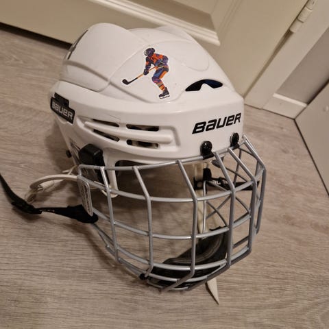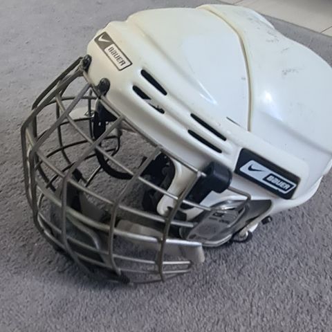 Bauer jääkiekkokypärä musta väriltään. Kypärä on suunniteltu jääkiekkokäyttöön ja siinä on metallinen kasvoteline sekä säädettävä leukahihna. 54/55