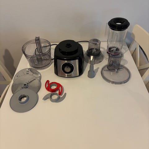 Tällä koneella onnistuu isotkin taikinat, viipalointi, raasteet, smoothiet ym. Smoothie-sekoittimen tilavuus 1,5 litraa, kulhon paljon suurempi. Taattua Bosch-laatua.