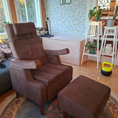 Armi aktiivituoli nahkaverhoiltu. Myydään hoitokotiin muuton jäljiltä pois tarpeettomana. Nahka kulunut mutta sen saa viltillä peitettyä, ja OVH on 1640€ joten tästä tosi halvalla.
