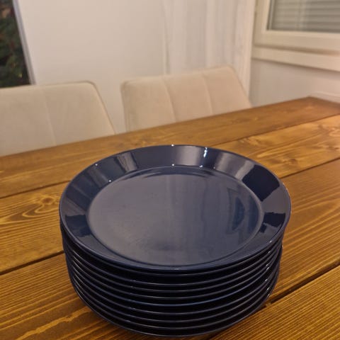 Tummanvihreät Teema-lautaset 26cm halkaisija. 3 kpl. Myydään vain koko setti.