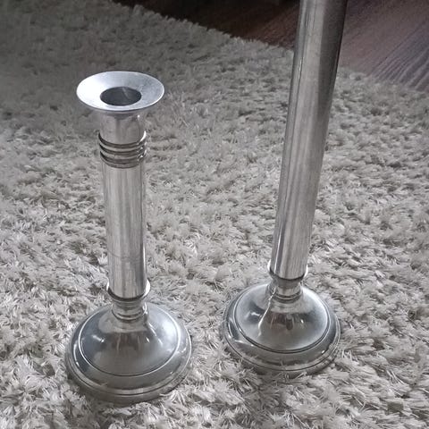 Myydään tarpeettomana tyylikkäät mustat metalliset kynttilänjalat 26cm ja 22,5cm korkeat. Enimmäkseen olleet koristeena. Tukevat ja erittäin hyväkuntoiset. Yhteishinta!
