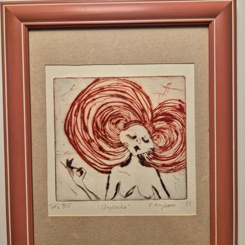 Tekstiilitaiteilija Margareta Ahlstedt-Willandtin alkuperäinen signeerattu kuvakudosluonnos Savon neito vuodelta 1952. Rasvaliitu paperille, kiinnitetty pahville. Pahvin koko 37,5x39 cm. Nouto tai postitus.