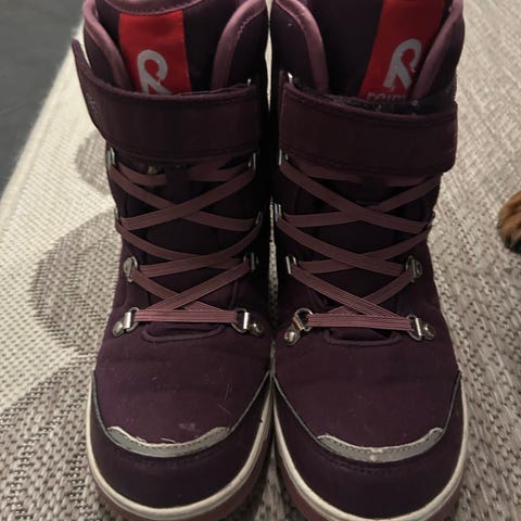 Yhdellä tytöllä yhden talven käytössä olleet Reiman talvikengät kokoa 35. Koko taisi olla reilu, samaan oli myös 36 koon kenkiä käytössä.
