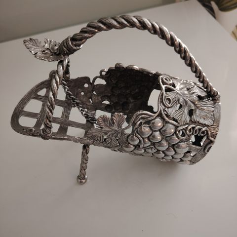 Myynnissä kuvien hieno koivupölliä matkiva pullopiilo/ teline viinille. Esineen ulkomitat ovat: korkeus 25,5 cm, leveys 17 cm sekä syvyys 15 cm.