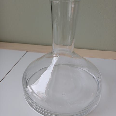 Iittala Essence decanter. Tarvittaessa voin myydä mukaan myös punaviinilaseja tyyliin 10€ / kpl