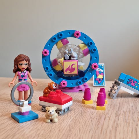 Hamstereiden synttärisetti, sininen kekkerihattu puuttuu ja rakennuksesta puuttuu yksi osa (toinen/viimeinen kuva)