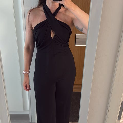 Kerran käytetty, rento jumpsuit kiristettävällä vyötärönauhalla. Joustavaa materiaalia.