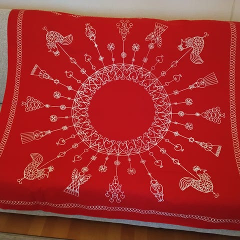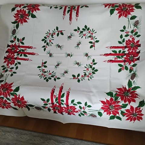 Vanha erittäin hyväkuntoinen puuvillaliina. Ehjä, siisti ja ryhdikäs, yhden pienen pienen tahran löysin. Koko noin 80cm x 80cm.