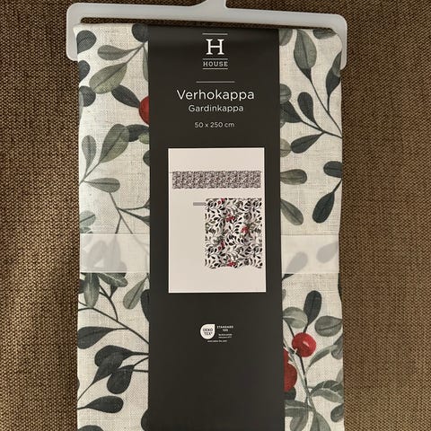 Eläväpintaista puuvillaa. Saa säädettyä sopivan korkuiseksi solmittavien nauhojen avulla.