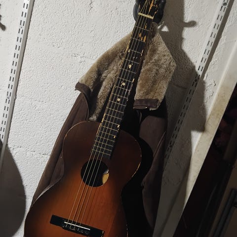 Solid spruce top (carved). Rosewood fretboard and bridge.