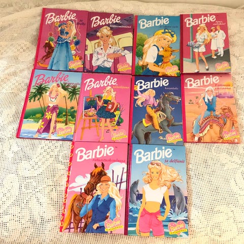 Barbie kirjat, nimet näkyy toisessa kuvassa. Vuodelta 1996.