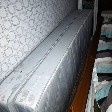 Annetaan vieraspatjoina olleet patjat, eläintalous. Toinen leveä normaali vaahtomuovipatja, jota hieman leikattu lyhyemmäksi (joki 10-15cm) alkuperäisestä mitasta. Toinen joustinpatja, jolla mukava nukkua ilman petauspatjaakin.