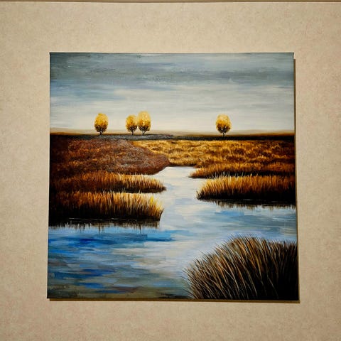 Metsäinen maisema voimakkaasti solisevalla purolla. Taiteilijasta en saanut selvää.