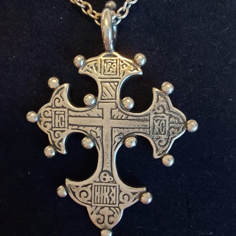 Kalevalan hopeinen risti ketjuineen. Molemmat Kalevalan leimalla. Ketju noin 60 cm. Hinta 50 euroa. Kaupat Tampereen keskusta. Joskus Helsinki käy.