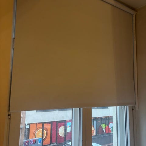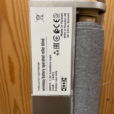 Myydään harmaa Ikean Fyrtur pimennysverho /älykaihdin. Leveys 140 cm.