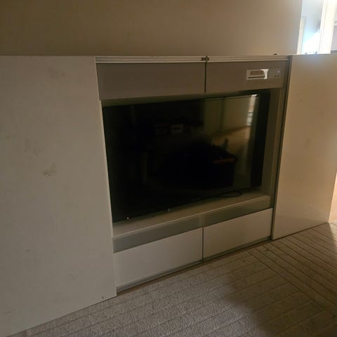 IKEA MARKÖR TV-kaappi / TV-säilytysyksikkö, suunnitteltu maksimissaan 42" televisiolle. Olen modannut takaosaan 5cm lisää tilaa, jotta sain 60x60x60cm kokoisen 3D tulostimen liukutasolla sisään ovet kiinni ja vedettyä puoliksi ulos säätöä yms. varten. Yksi irtohylly ja kannakkeet mukana. Kaksi tarvikelaatikoa. Naarmuja löytyy ja käytön jälkiä.