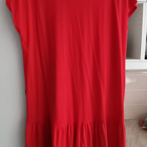 Marimekko Kesämekko on valmistettu puuvillasta ja väriltään punainen. Mekon koko on 38. Kai-kai n.52 cm.