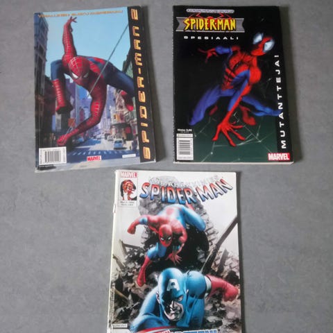 Kaksi Spider-Man sarjakuvaa, joissa esiintyy hahmoja kuten Spider-Man ja muut sarjakuvahahmot. Sarjakuvat ovat suomenkielisiä ja sisältävät useita toimintakohtauksia.