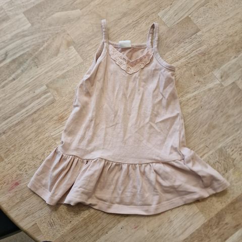 Myydään uusi mekko. Mekossa ei näkynyt kokomerkintää. Mekon pituus olalta helmaan noin 36 cm, joten koko on ehkä noin 70 - 80 cm.