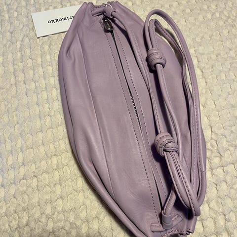 Marimekko, pieni Karla, mustavalkoinen nahkainen käyttämätön käsilaukku. Pituus 26 cm.
