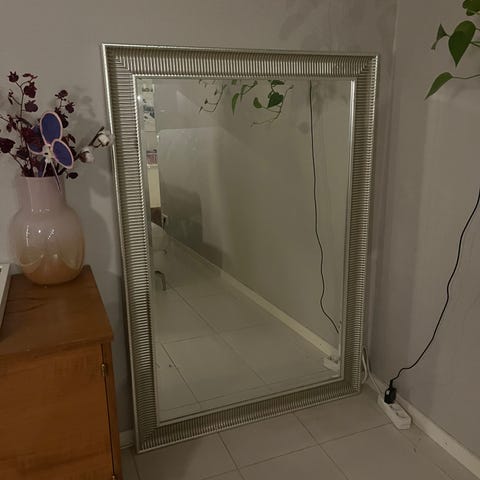 Hyväkuntoinen peili, leveys 130 cm ja korkeus 90 cm. Nouto Espoon Nöykkiöstä.