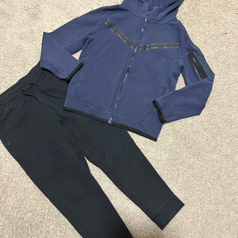 Musta Nike Tech Fleece. Polvissa kulumaa ja toisessa hihassakin nirhauma. On silti käyttöikää vielä reilusti jäljellä ja näyttää päällä hyvältä. Koko 137-147. Oulussa Kuivasrannalla, myös toridiili käy.