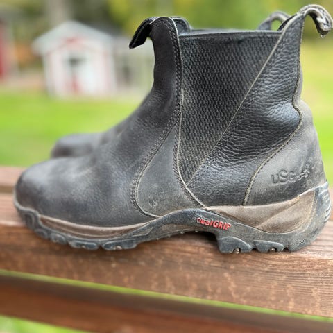 Kaupan päälle saa halutessaan nahkaiset chapsit, joista toisen joustopaneeli on rispaantunut.