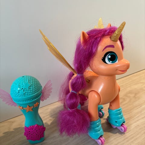 Laulava Little pony. Pony ja mikrofoni. Laulaa englannin kielellä ja liikku