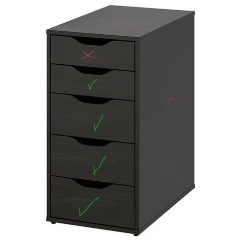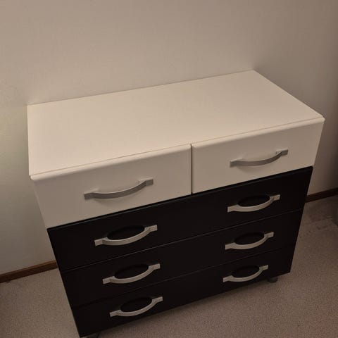 VARATTU! Annetaan keittiön saareke. Valkoinen runko, neljä tumman harmaata vetolaatikkoa, ja musta laminaattitaso. Käytetty kunto, mutta edelleen toimiva. Nouto Tampereen keskustasta 20.-21.12.25.