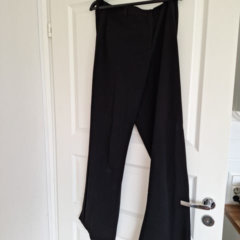 Amisu mustat housut kokoL. Puntin pituus n.83 cm. Lahkeissa halkio. Joustava vyötärö ei vetoketjua/nappia.