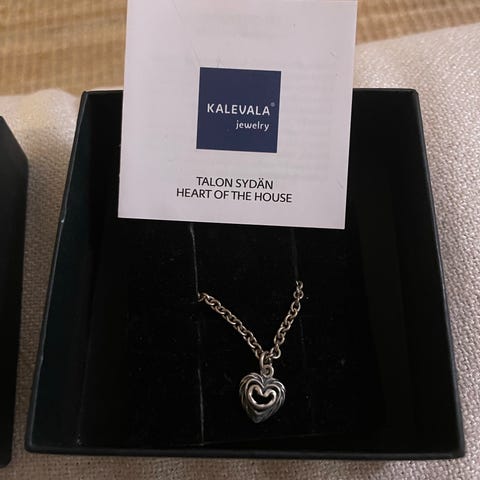 Myydään tarpeettomana käyttämätön hopeinen Talonsydän-kääty. Ketju 50 cm, säädettävissä 42-50 cm välillä.