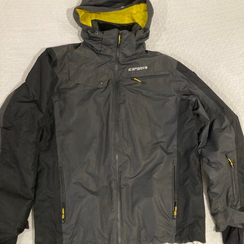 Myynnissä hyvässä kunnossa olevat pieneksi jääneet lasketteluvaatteet. Molemmissa, takissa ja housuissa, on vedenkestävä ja hengittävä mutta lämmin materiaali.