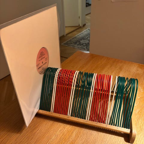 Vintage levyteline. Luultavasti savikiekoille suunniteltu mutta vinyylit menee hyvin tähän. Vetää 50 levyä. Merkki: Westerlund