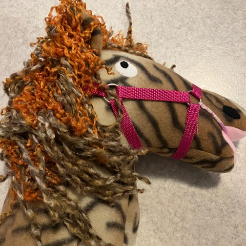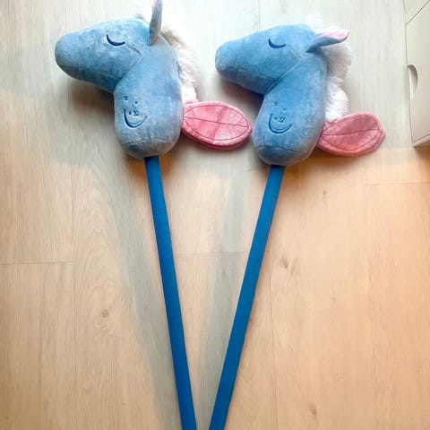 Annetaan hempeän vaaleanpunainen keppari seuraavalle ratsastajalle. Napista painamalla saa laukkausäänet.